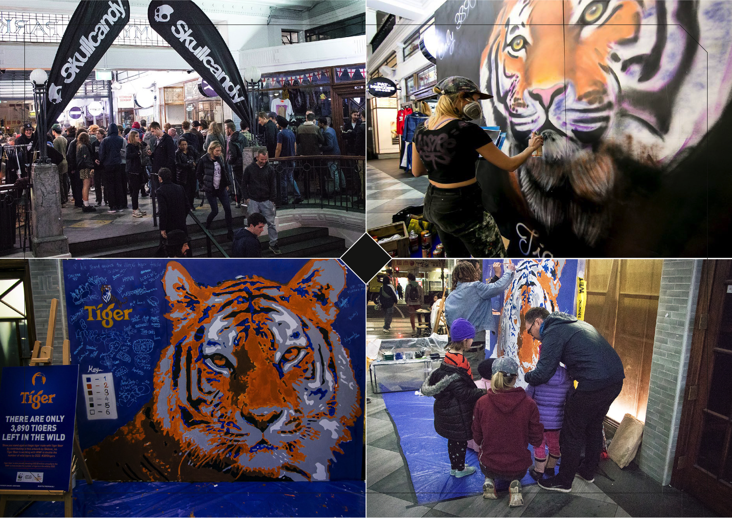 ‘St. Kevins Arcade provided Tiger Beer with the opportunity to activate an interactive art piece within the entrance of the arcade during the bStreet festival. Being a busy thoroughfare and drawing a diverse crowd, Tiger Beer was able to raise awareness of the illegal Tiger trade on International Tiger Day, via an interactive art work that engaged families as well as festival goers alike.’
